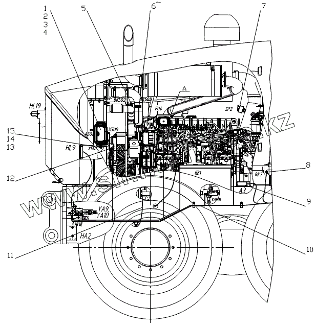 Схема гидравлическая соединений. Гидросистема переднего моста