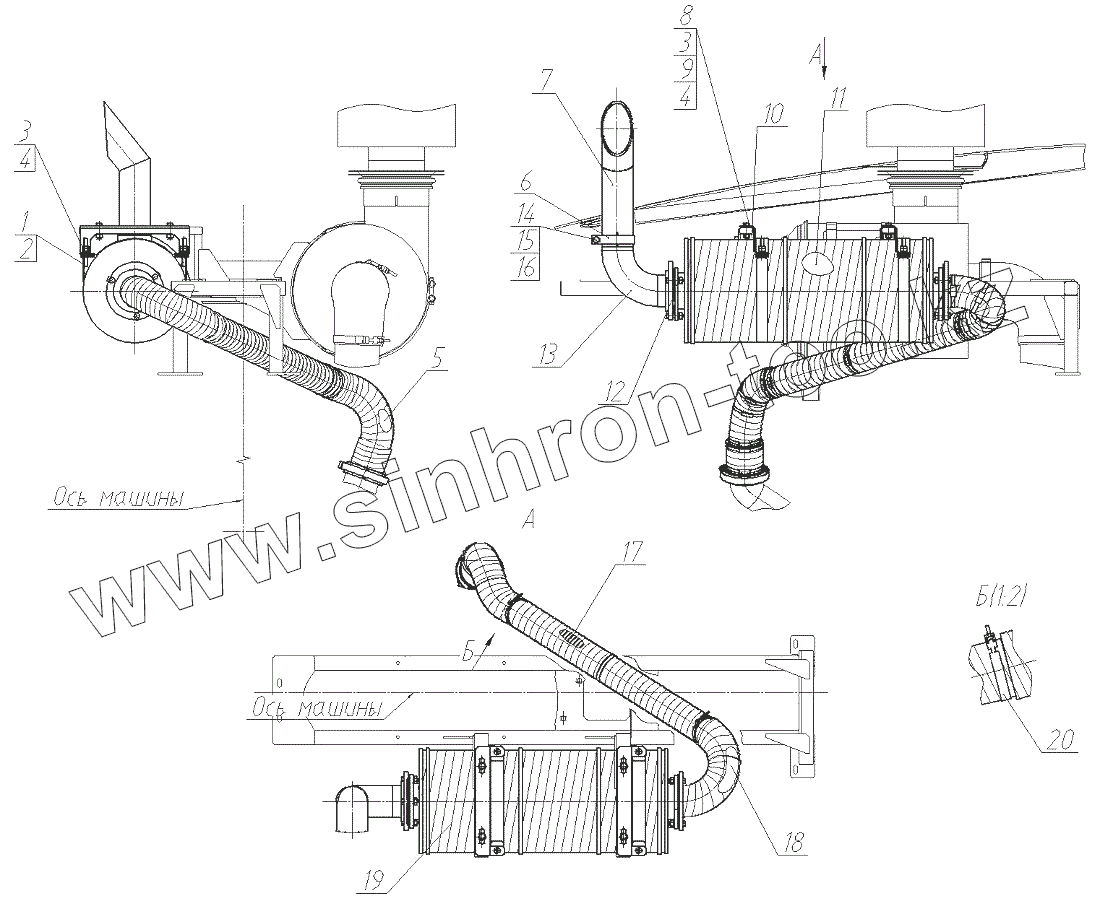 Каталог запасных частей к технике: Брянский Арсенал TG-250. Установка глушителя