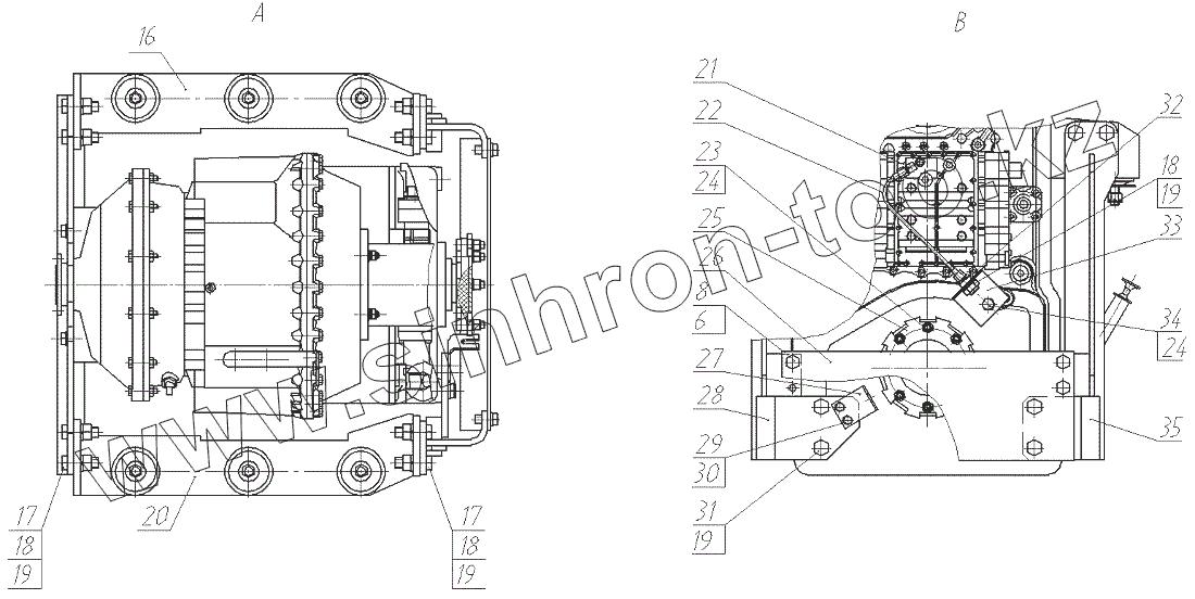 Каталог запасных частей к технике: Брянский Арсенал TG-250. Установка коробки передач