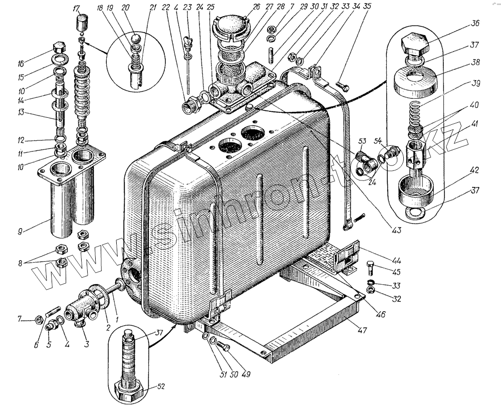 Каталог запасных частей к технике: Булат ЭО-2621А. Масляный бак с фильтром 03.8800.000