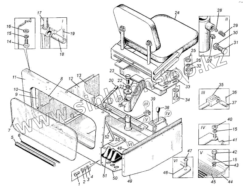 Каталог запасных частей к технике: Булат ЭО-2621B. Установка сиденья