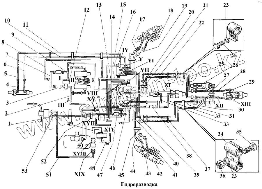 Каталог запасных частей к технике: Булат ЭО-2621В-3. Гидроразводка (13.1100.000-06)