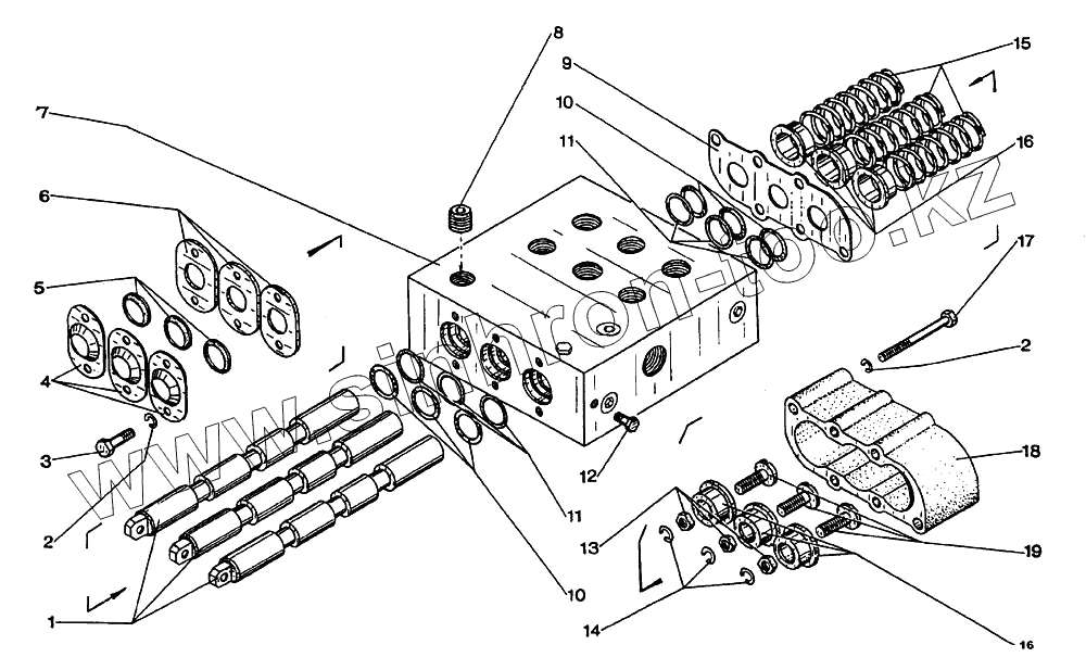 Каталог запасных частей к технике: Булат ЭО-2627. Гидрораспределитель трехзолотниковый без предохранительного клапана