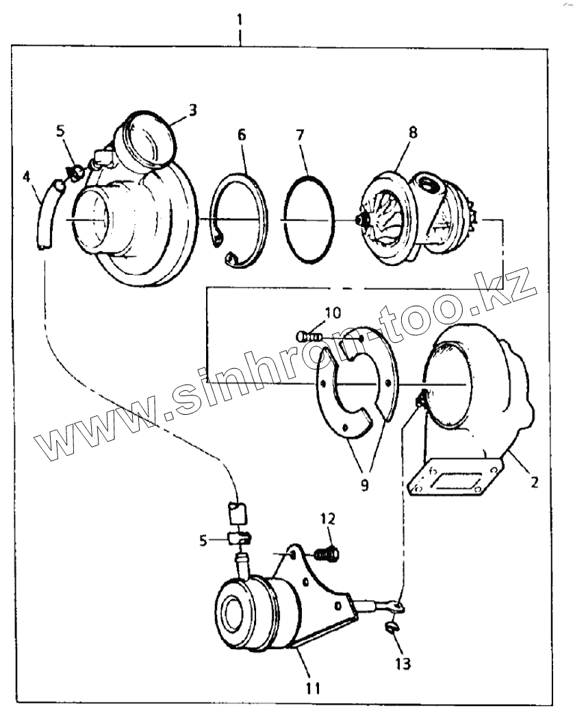 Каталог запасных частей к технике: CASE IH 595LSP, 595SLE. TURBOCHARGER, 595SLE DBK0009001- 595LSP DBK0010001-