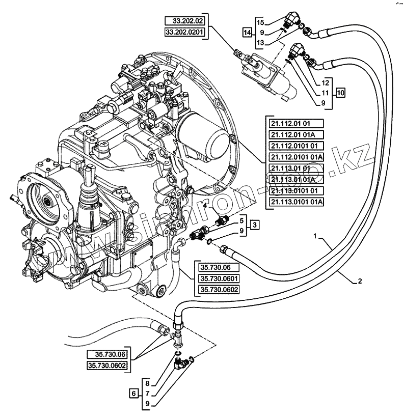 35.360.0102 REAR HAMMER SYSTEM HAMMER SYSTEM PIPING SIDE SHIFT (VAR.742006742007742008742009)