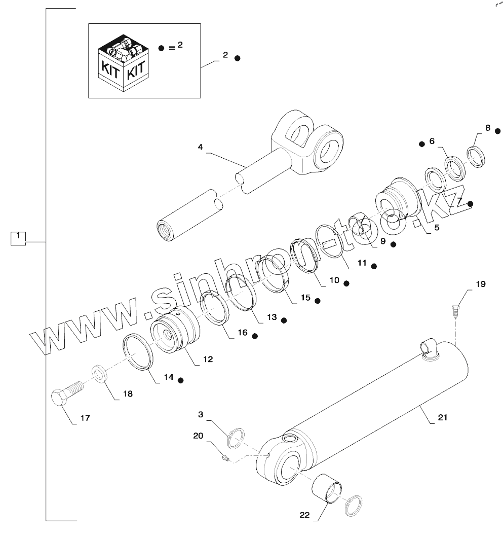 Каталог запасных частей к технике: CASE IH 821F. STEERING CYCLINDER ASSEMBLY