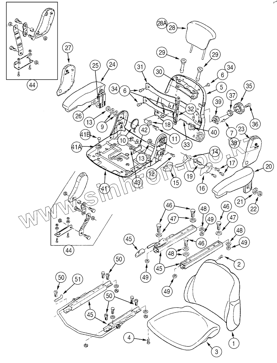 Каталог запасных частей к технике: CASE IH 921F. SEAT ASSY, MECHANICAL SUSPENSION - VINYL