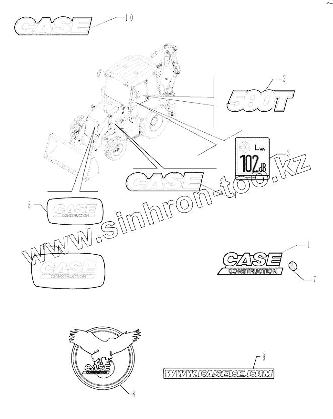 Каталог запасных частей к технике: CASE IH Case-580T (часть 2). 90.108.0209 DECALS CAB