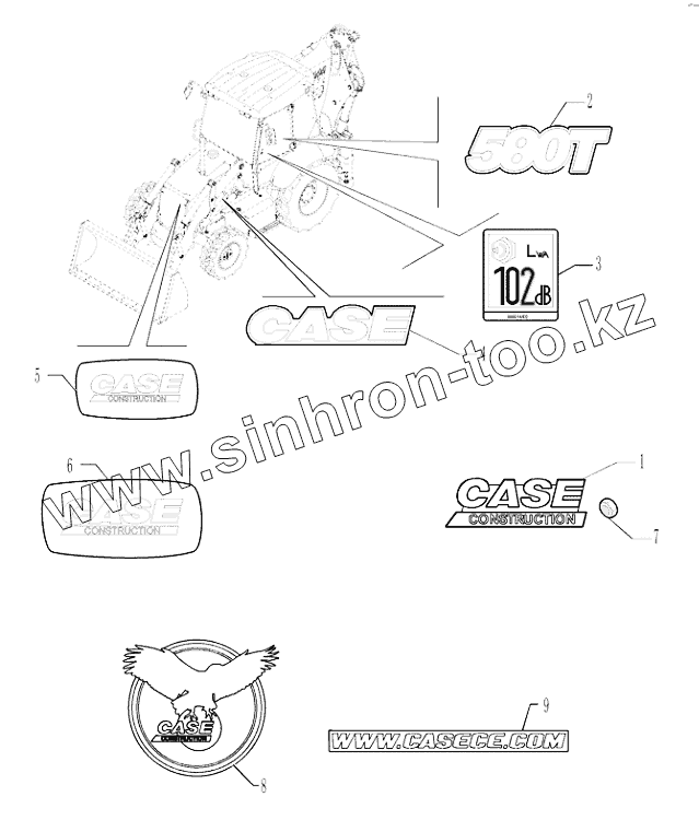 Каталог запасных частей к технике: CASE IH Case-580T (часть 2). 90.108.0211 DECALS