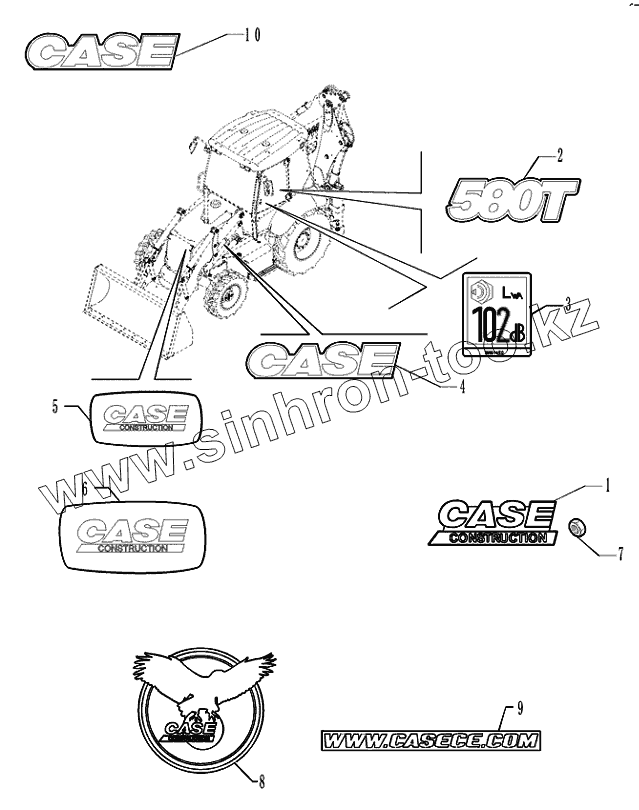 Каталог запасных частей к технике: CASE IH Case-580T (часть 2). 90.108.0210 - DECALS