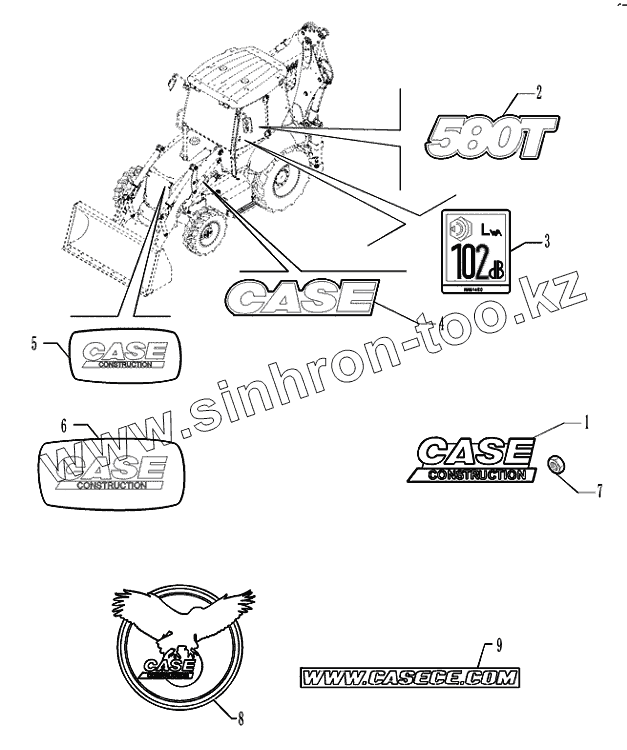 Каталог запасных частей к технике: CASE IH Case-580T (часть 2). 90.108.0211 - DECALS