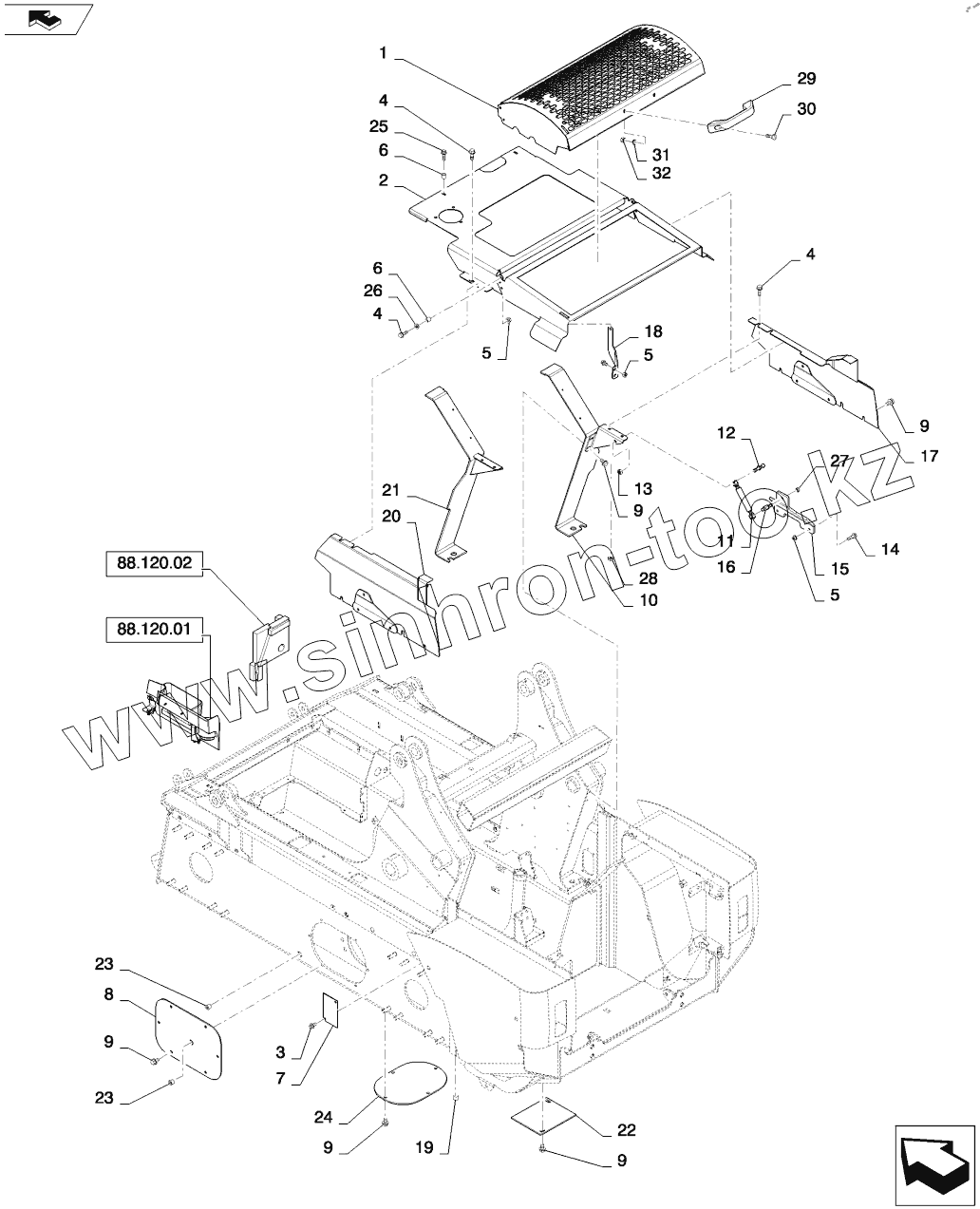 Каталог запасных частей к технике: CASE IH SR250. HOOD AND COVERS (SV300)