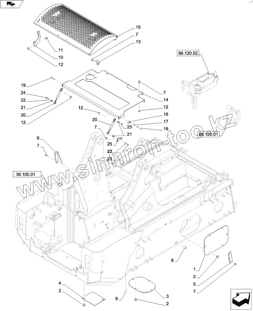 Каталог запасных частей к технике: CASE IH SV300. HOOD AND COVERS (SR250)