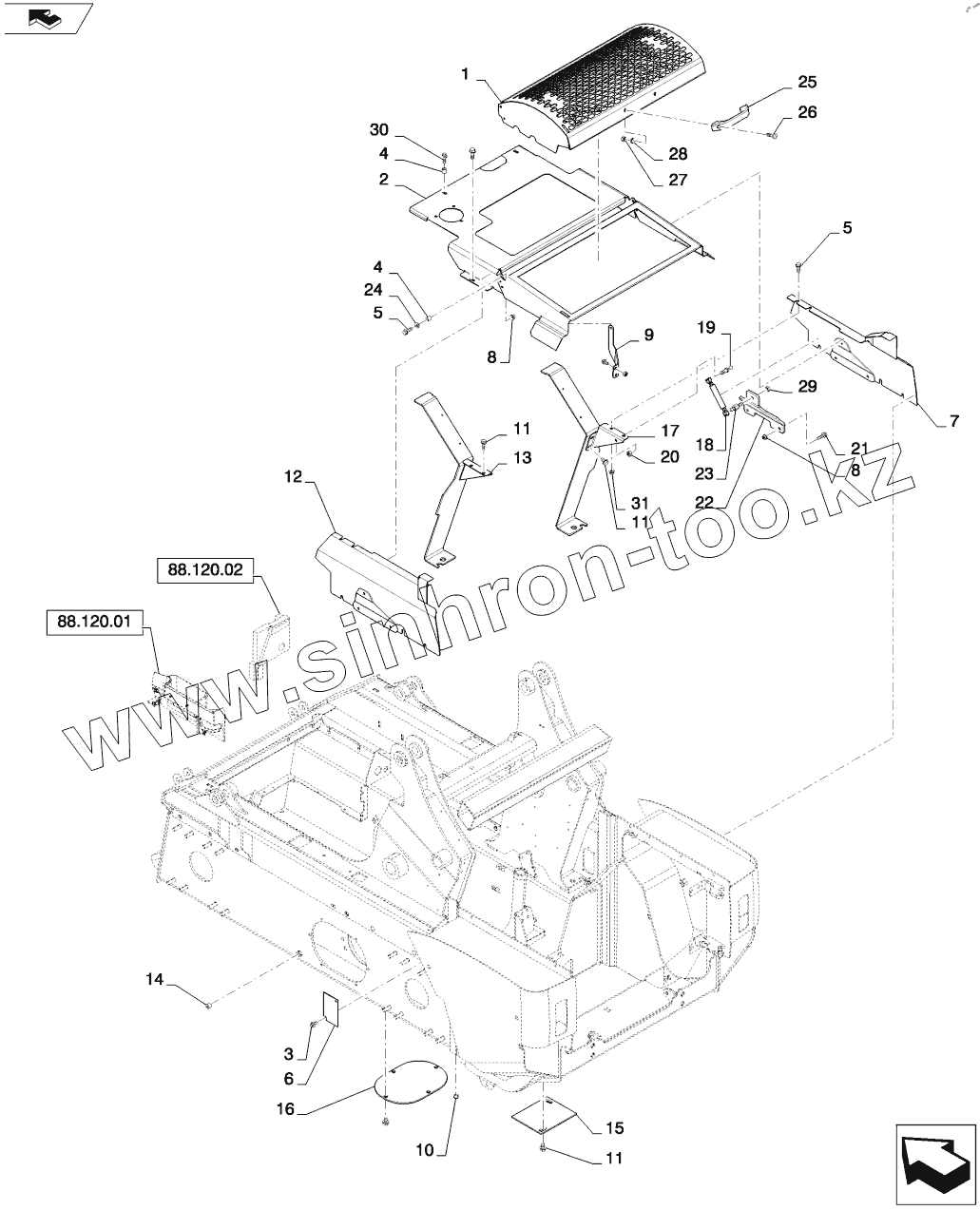 Каталог запасных частей к технике: CASE IH SV300. HOOD AND COVERS (TV380)