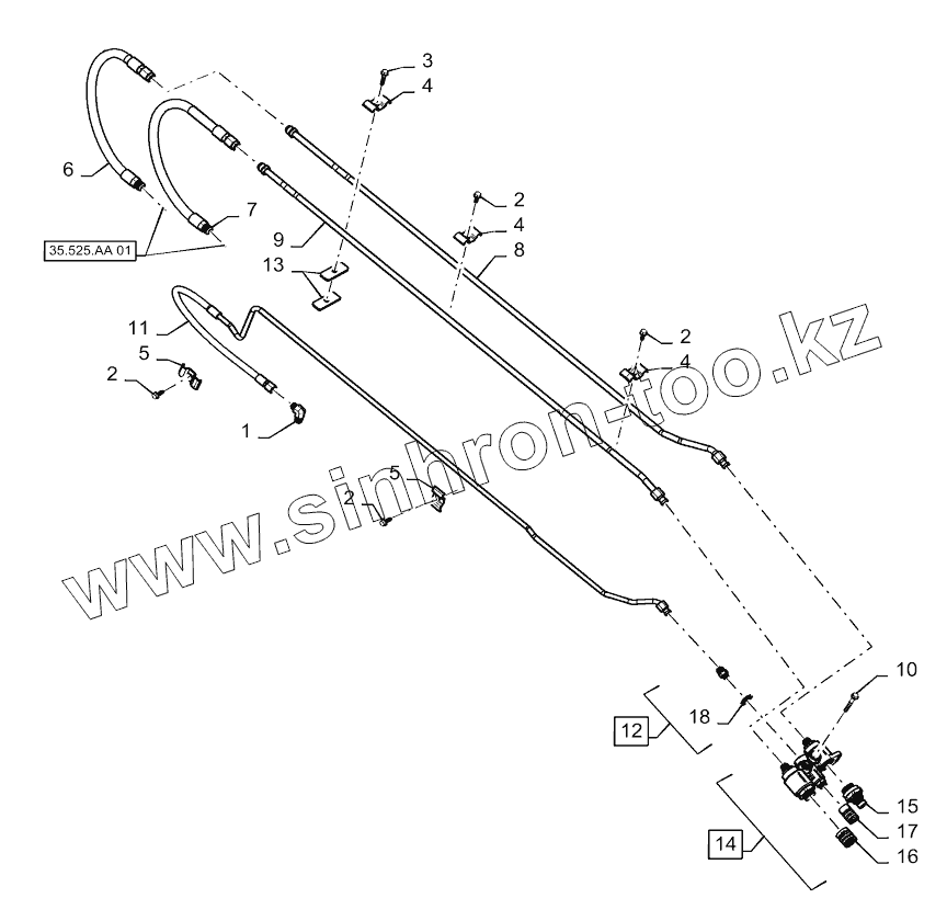 Каталог запасных частей к технике: CASE IH TR270. AUXILIARY BOOM ARM PLUMBING, STANDARD FLOW