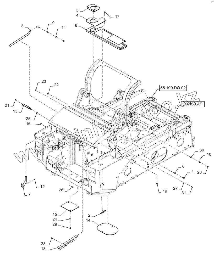 Каталог запасных частей к технике: CASE IH TR270. ENGINE HOOD, REAR PANEL SUPPORT