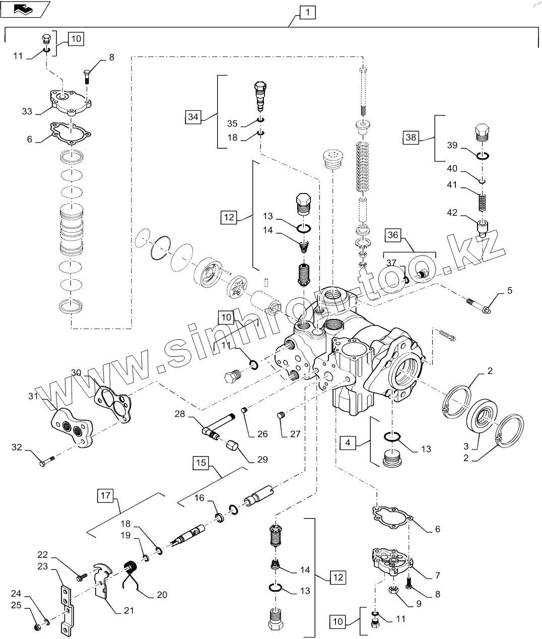 Каталог запасных частей к технике: CASE IH TR270. TANDEM HYDROSTATIC PUMP, 46CC, MECHANICAL CONTROL, FRONT