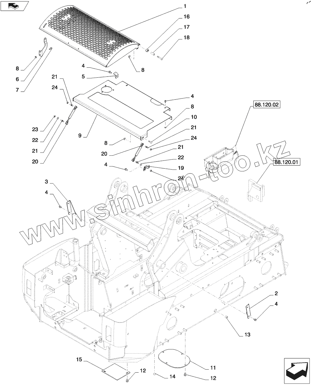 Каталог запасных частей к технике: CASE IH TR320. HOOD AND COVERS (TR320)