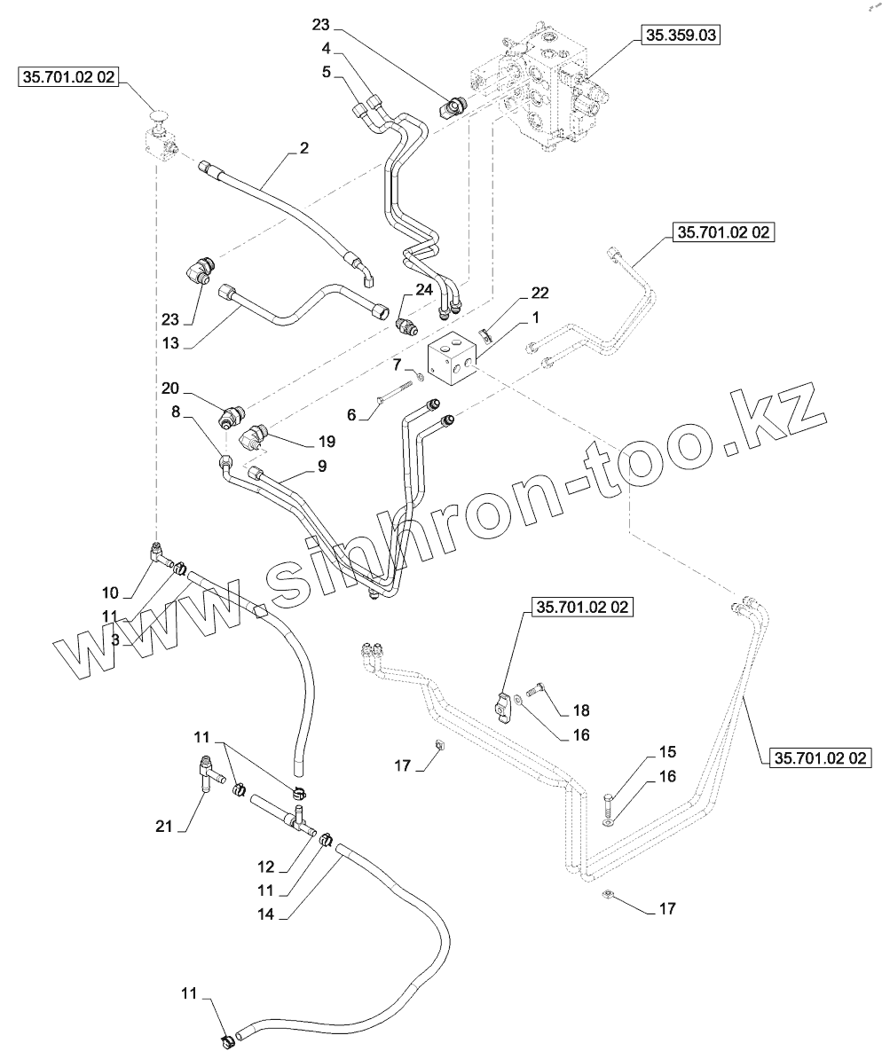 Каталог запасных частей к технике: CASE IH TV380. LOADER VALVE PLUMBING (SV300,TV380)