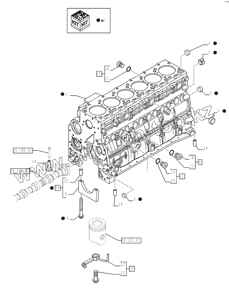 Каталог запасных частей к технике: CASE IH WX-188 (часть 1). 10.001.02 - CRANKCASE