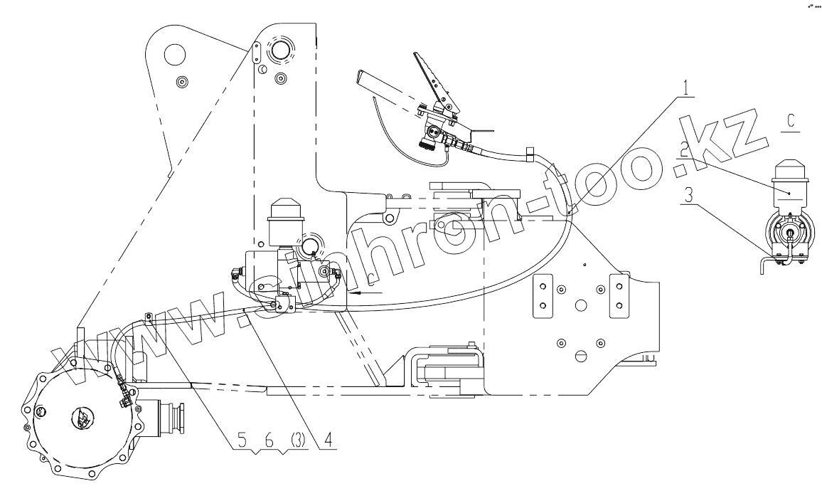 Каталог запасных частей к технике: ChengGong CG-932H. Z33E09T35 Braking System (Front booster pipeline)
