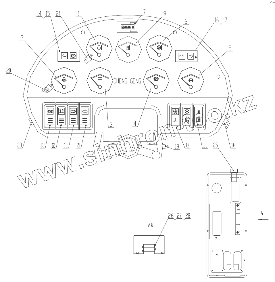 Каталог запасных частей к технике: ChengGong CG-932H. Z33E15T35 Panel Assembly