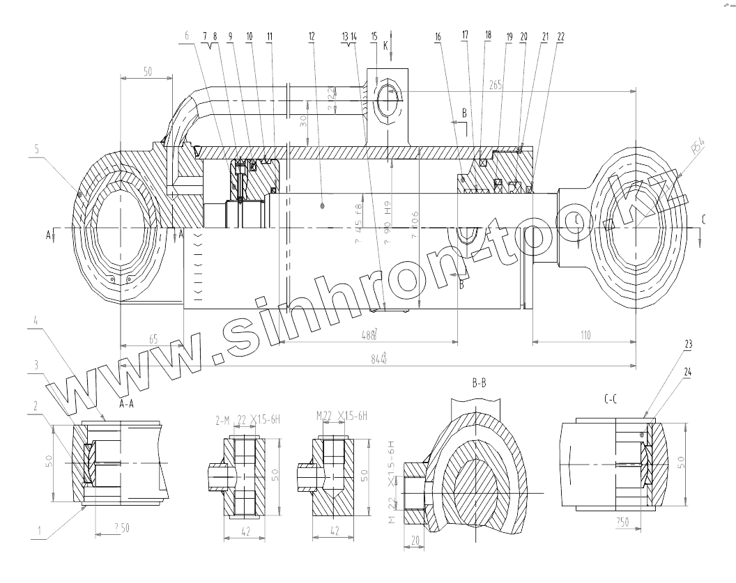 Каталог запасных частей к технике: ChengGong CG-956G. CL90X45/488EG-00B Steering Cylinder