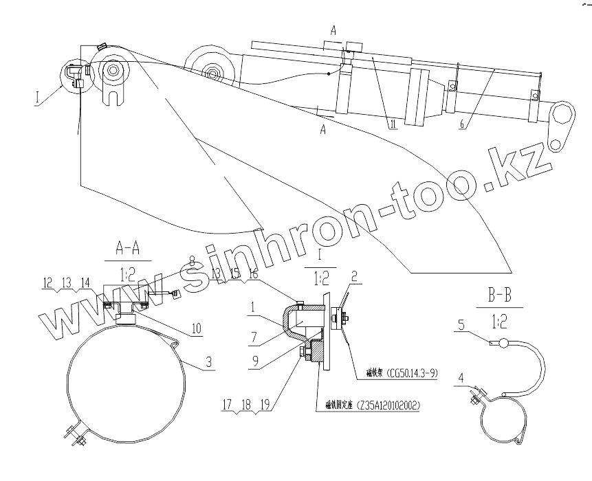 Каталог запасных частей к технике: ChengGong CG-956G. Z50F16 Bucket Positioner -Tilt Adjustment, Bucket Lift kickout
