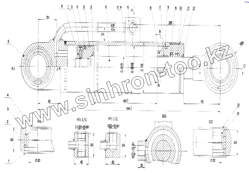Каталог запасных частей к технике: ChengGong CG-958G. CL90X45/488 EG-00 Steering Cylinder
