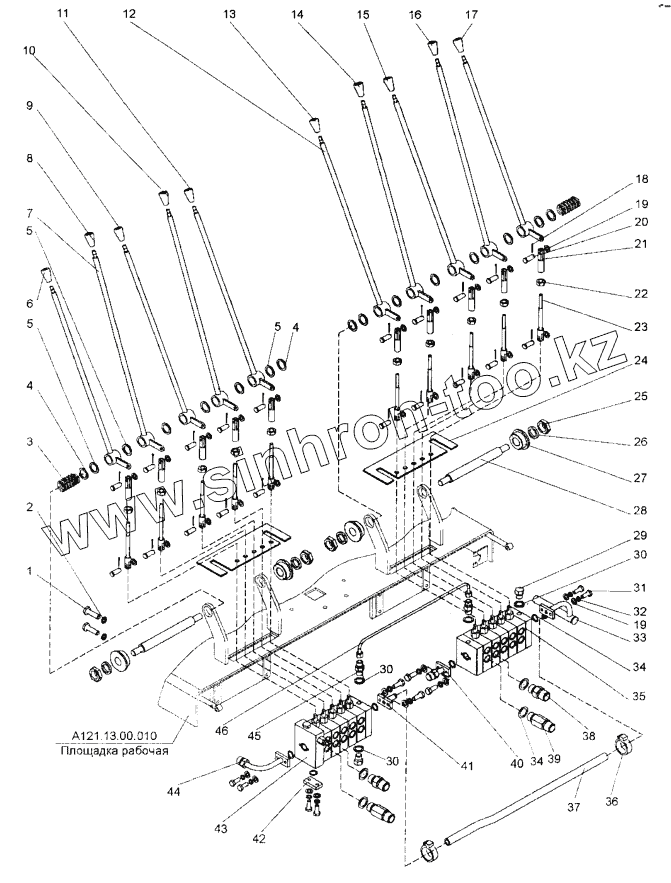 Каталог запасных частей к технике: ЧСДМ А-120. Установка гидрораспределителей (А121.13.07.000)
