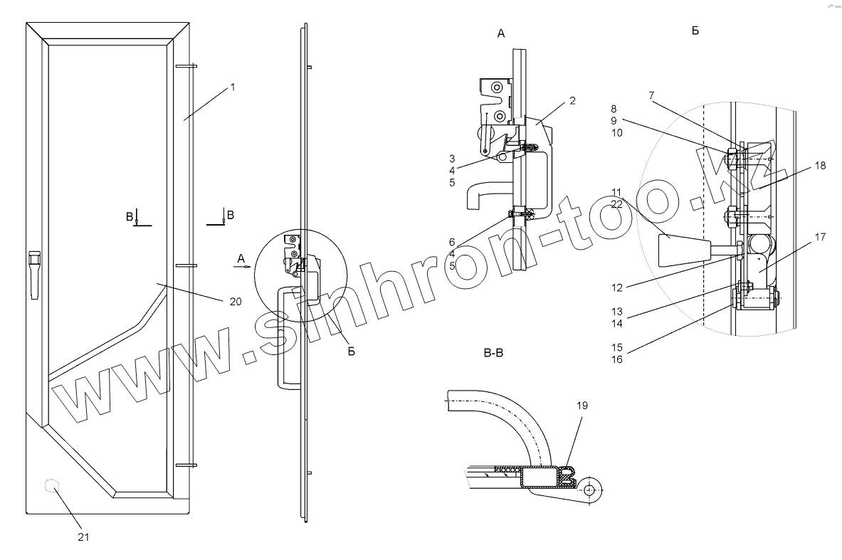 Каталог запасных частей к технике: ЧСДМ ДЗ-98В. Дверь (КА.51.11.00.000)
