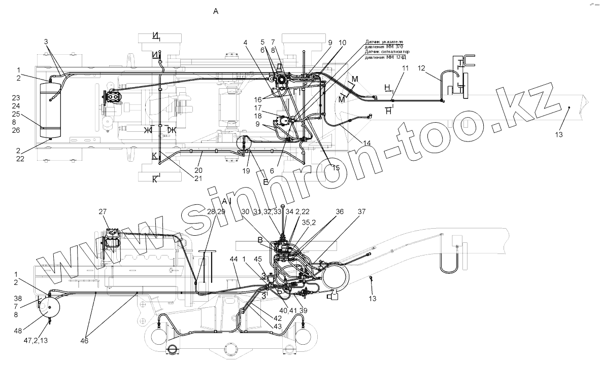 Каталог запасных частей к технике: ЧСДМ ДЗ-98В. Система пневматическая (ДЗ-98М2.42.00.000)