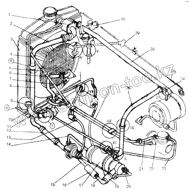 Каталог запасных частей к технике: ЧСДМ ДЗ-98В. Система охлаждения и разогрева двигателя