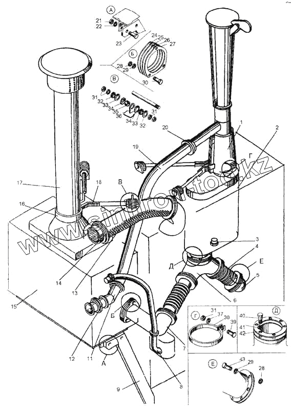 Каталог запасных частей к технике: ЧСДМ ДЗ-98В. Система всасывания и выхлопа