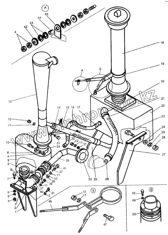 Каталог запасных частей к технике: ЧСДМ ДЗ-98В. Система всасывания и выхлопа