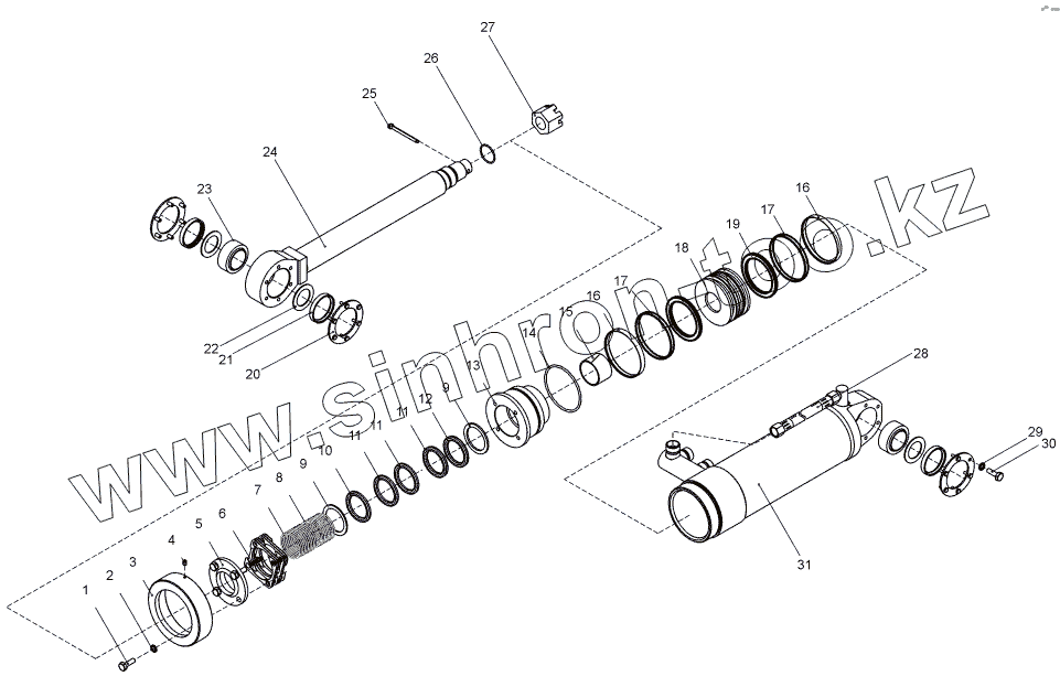 Каталог запасных частей к технике: ЧСДМ Погрузчик В-138. Гидроцилиндр (В138.43.03.000)