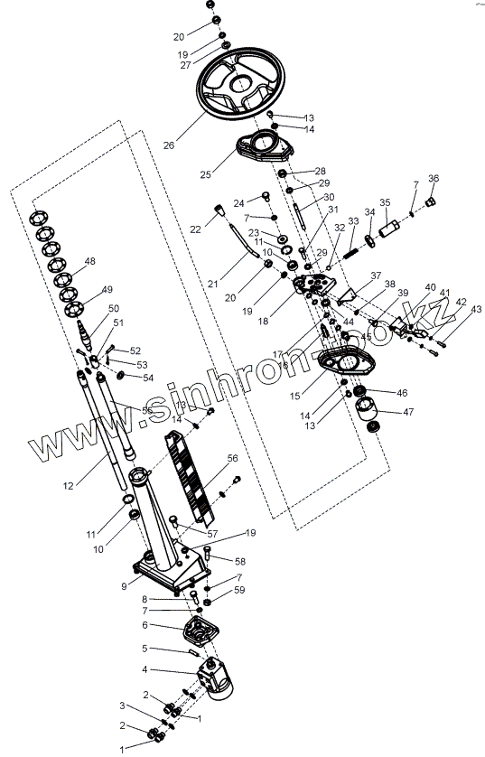 Каталог запасных частей к технике: ЧСДМ Погрузчик В-138. Колонка рулевая (В138С.13.06.000)