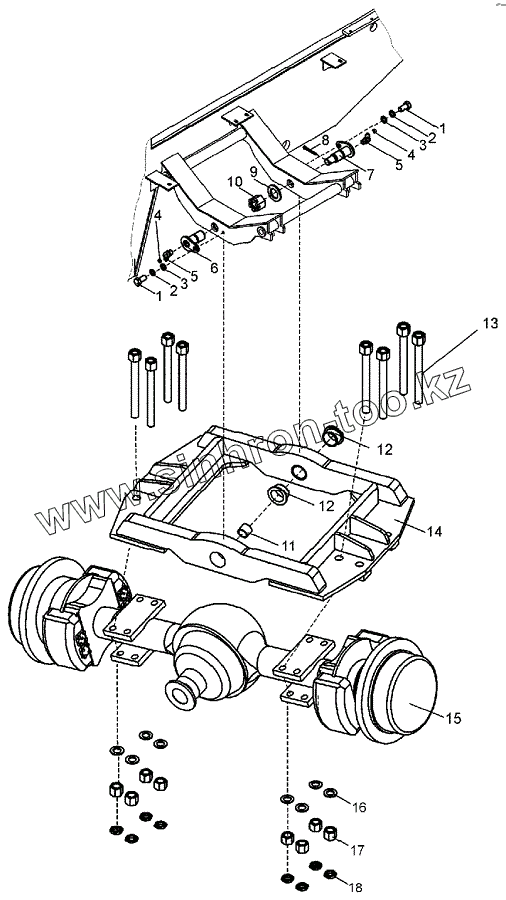 Каталог запасных частей к технике: ЧСДМ TL-155. Установка моста заднего