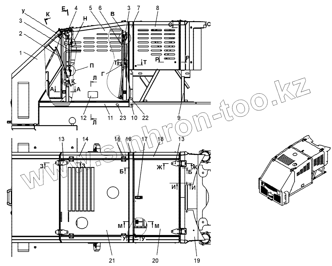 Каталог запасных частей к технике: ЧСДМ TL-155. Установка капота (TL155.52.12.000)