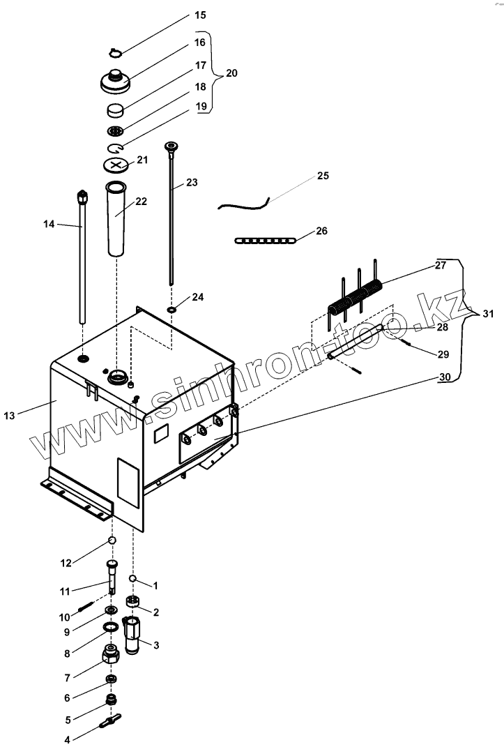 Каталог запасных частей к технике: ЧСДМ В-160. Бак топливный (А121.31.02.000-01)