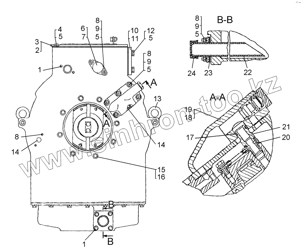 Каталог запасных частей к технике: ЧТЗ Бульдозер Б11. Коробка передач, детали крепления