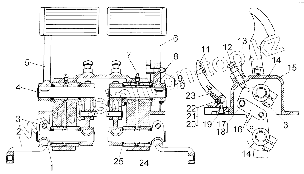 Каталог запасных частей к технике: ЧТЗ Бульдозер Б11. Механизм управления тормозами