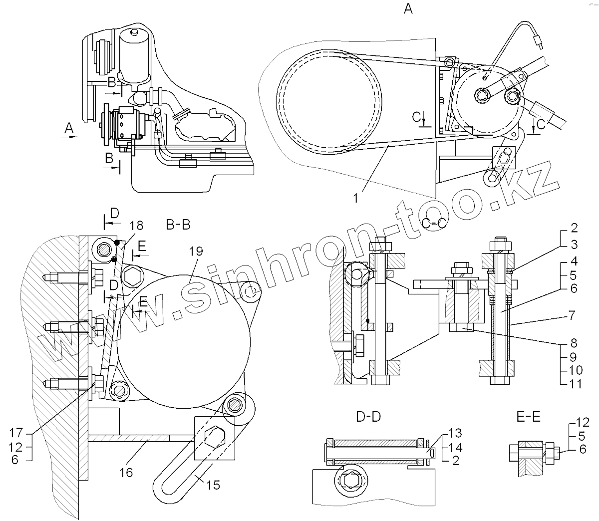 Каталог запасных частей к технике: ЧТЗ Бульдозер Б11. Установка компрессора на двигатель ЯМЗ
