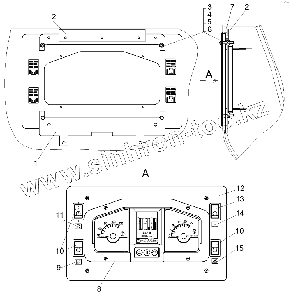 Каталог запасных частей к технике: ЧТЗ Бульдозер Б11. Установка панели приборов