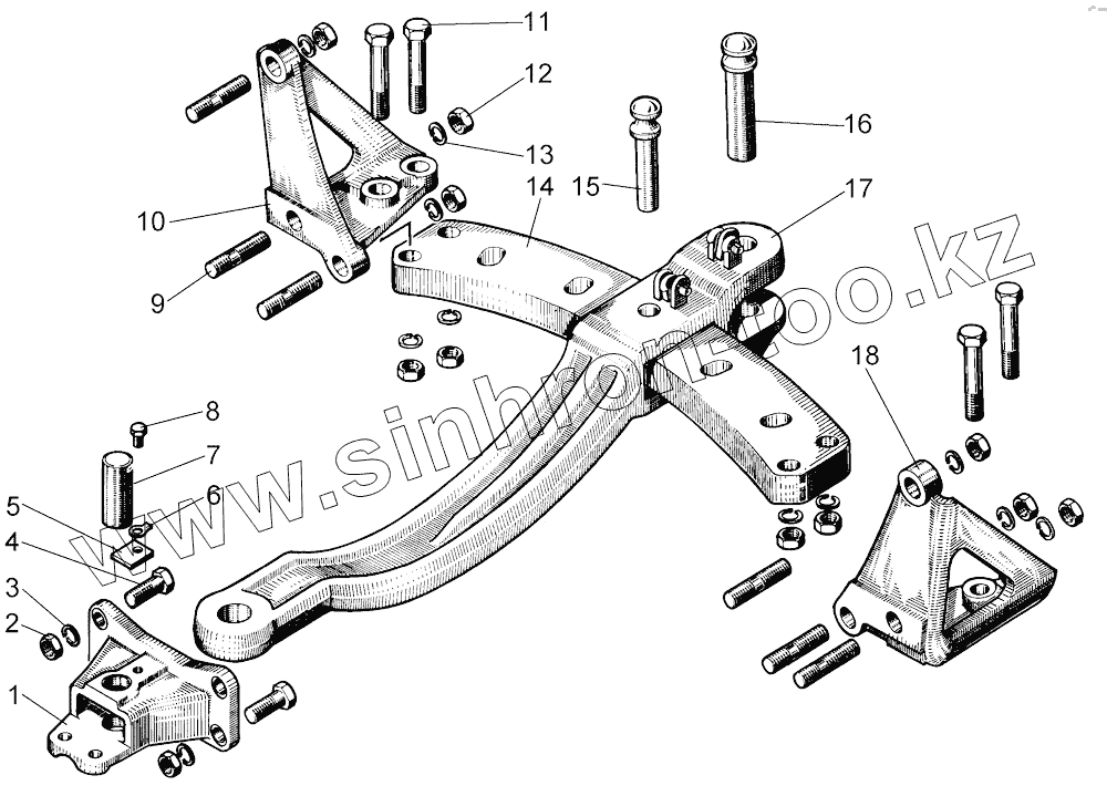 Каталог запасных частей к технике: ЧТЗ Бульдозер Б11. Установка прицепного устройства маятникового типа