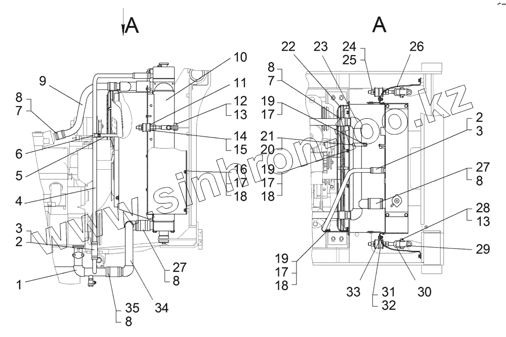 Каталог запасных частей к технике: ЧТЗ Бульдозер Б11. Установка радиаторов