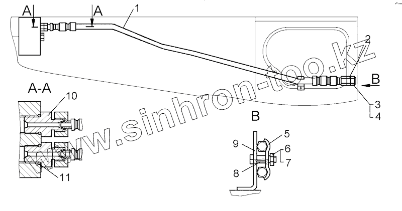 Каталог запасных частей к технике: ЧТЗ Бульдозер Б11. Установка рукавов
