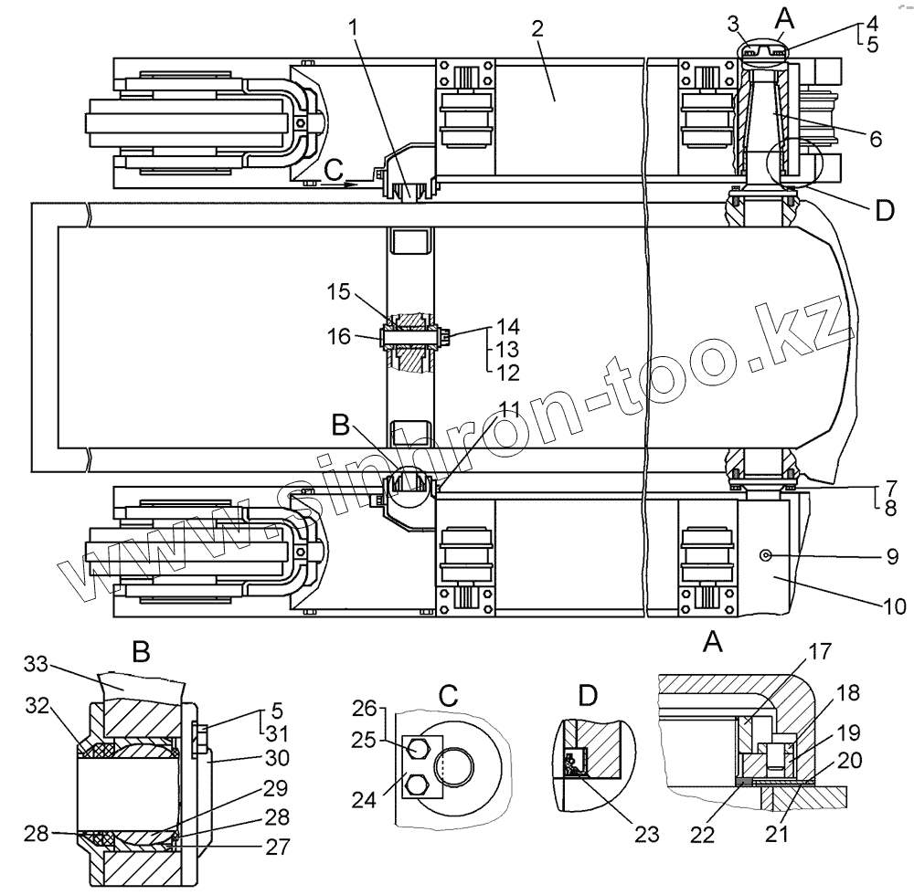 Каталог запасных частей к технике: ЧТЗ Бульдозер Б11. Установка тележек. Балка