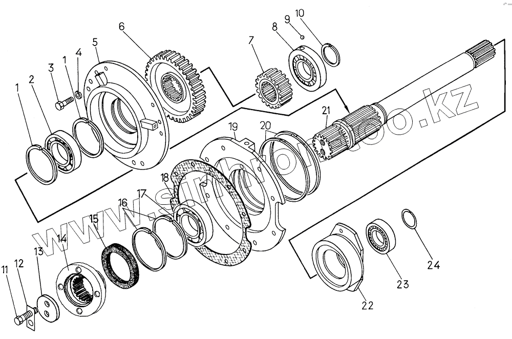 Каталог запасных частей к технике: ЧТЗ Бульдозер Б11. Вал с деталями