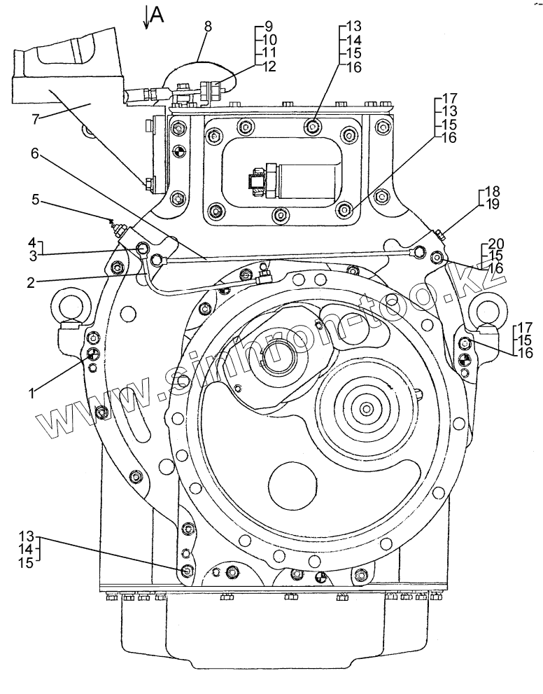 Каталог запасных частей к технике: ЧТЗ Бульдозер Б12. Коробка передач - детали крепления